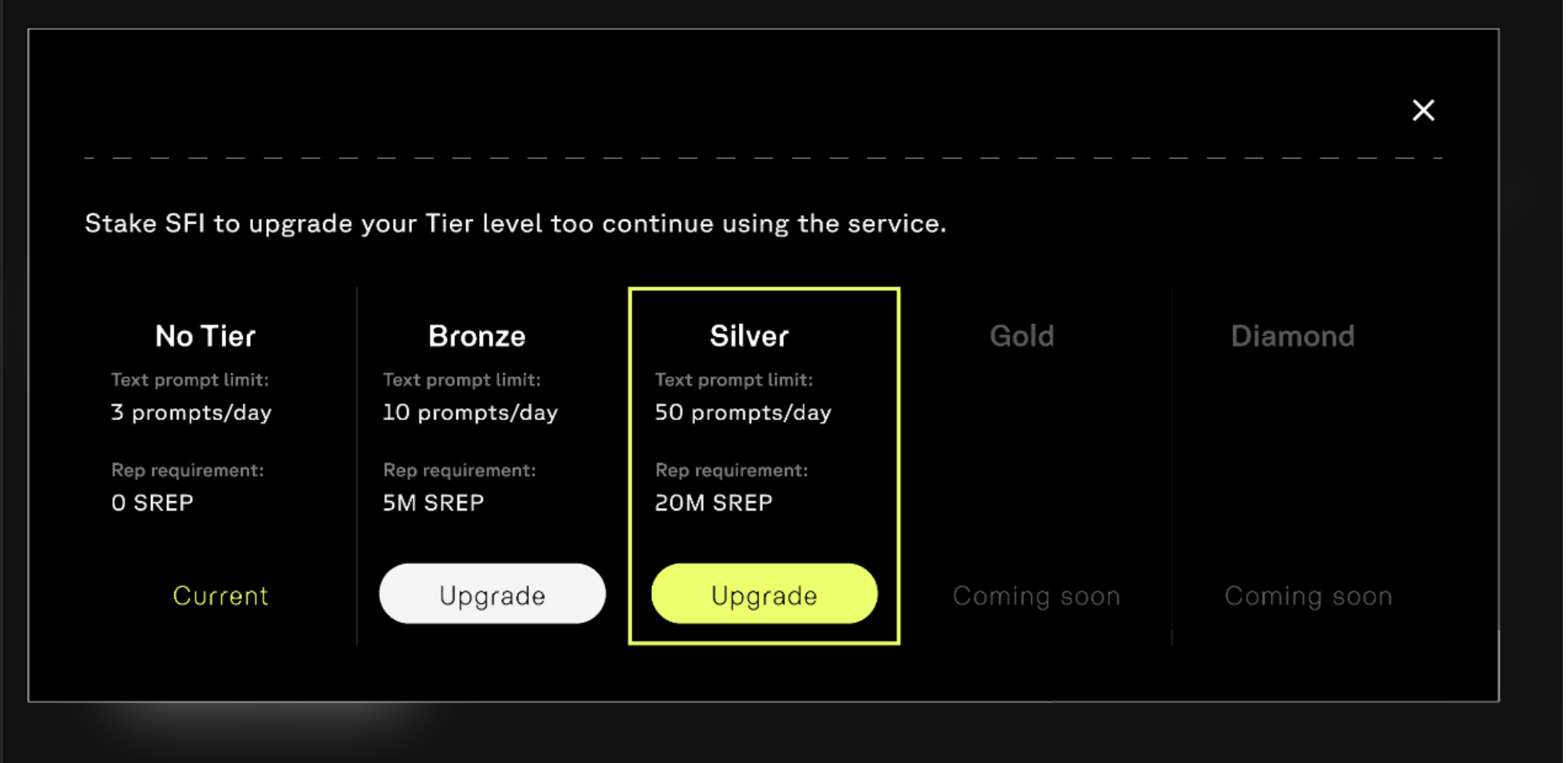Premium tiers are the gateway to early access features, starting with the SFI AI Agent for portfolio management and analytics.
